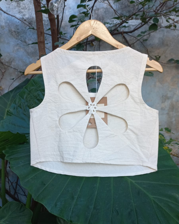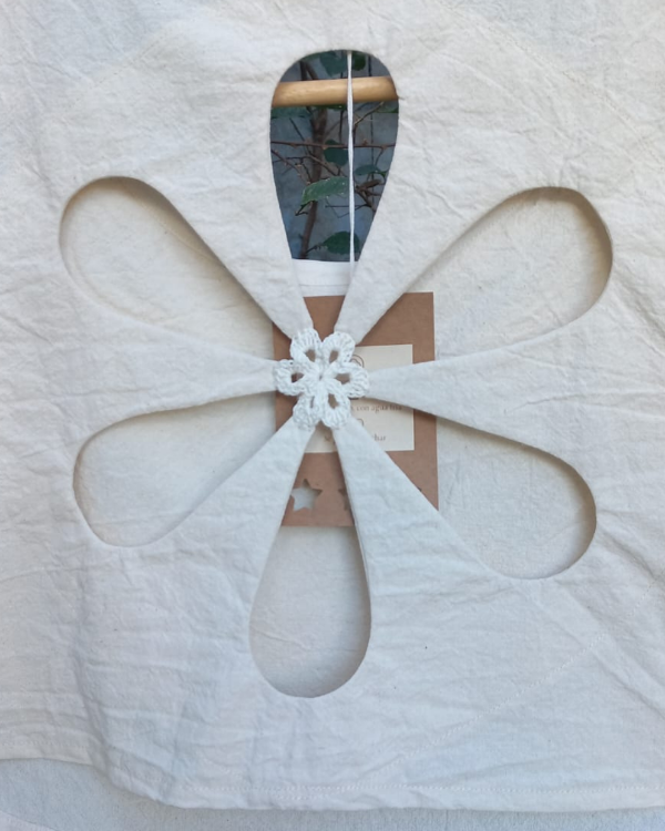 Este top está confeccionado íntegramente por mis manos con telas naturales, de origen vegetal y de producción nacional, respetando la naturaleza de la que formamos parte.
